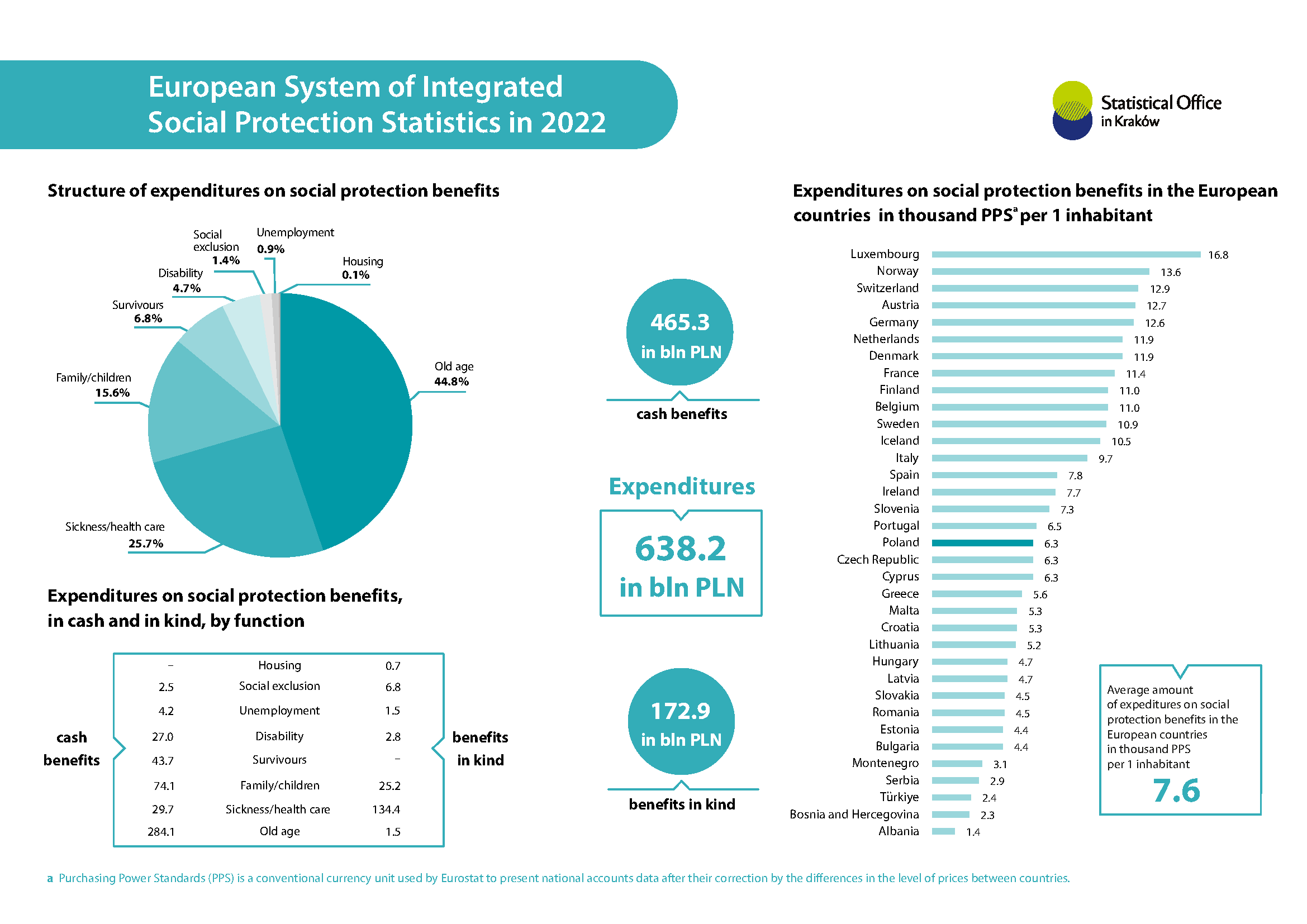 European System of Integrated Social Protection Statistics in 2022 A A A 28.11.2025 Downloads European System of Integrated Social Protection Statistics in 2022 1.35 MB European System of Integrated Social Protection Statistics in 2022 0.03 MB Archive 2024 Social protection benefits in 2021