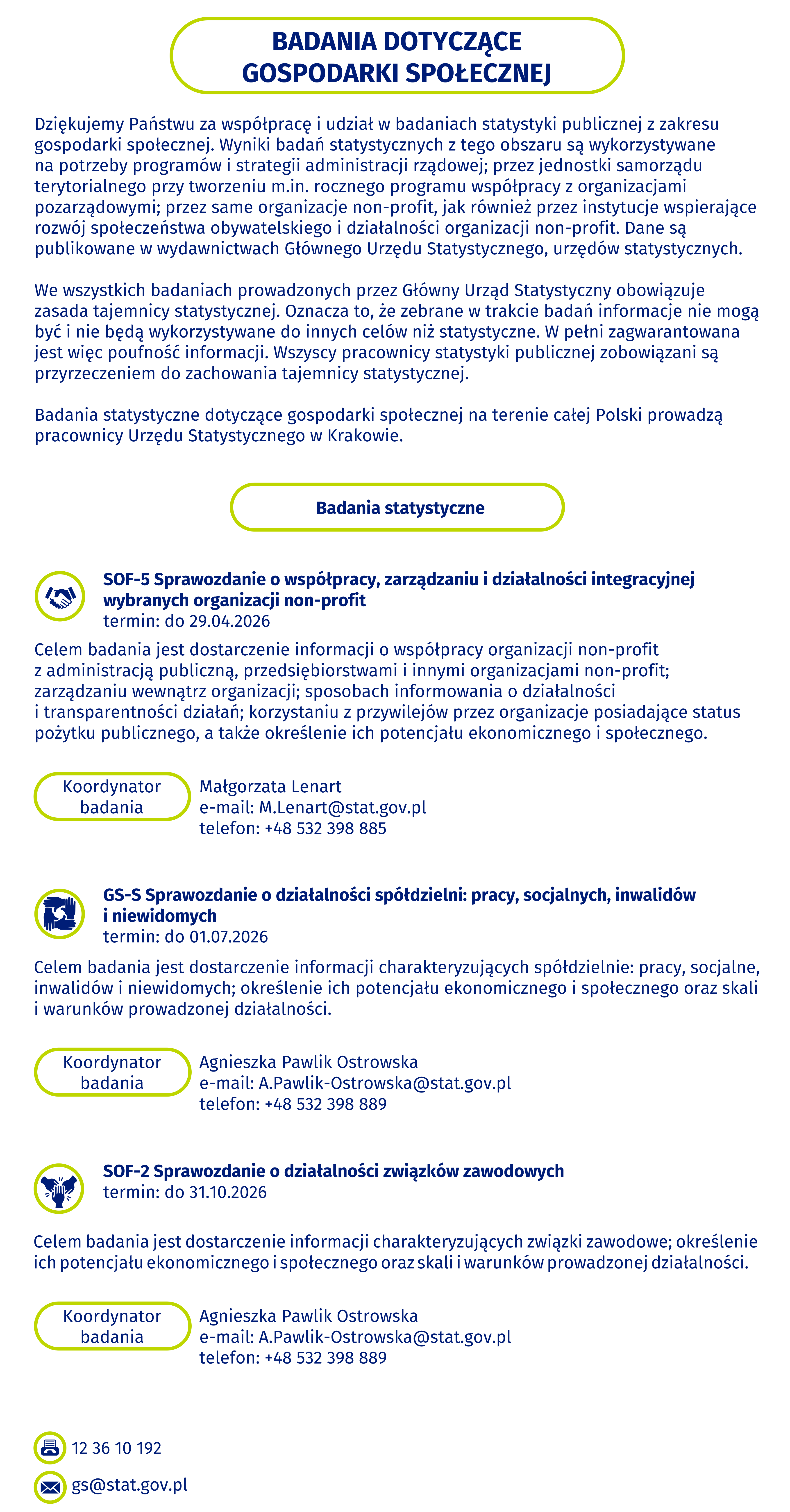 Wykaz osób do kontaktu w sprawie badań jest dostępny na stronie internetowej Głównego Urzędu Statystycznego: